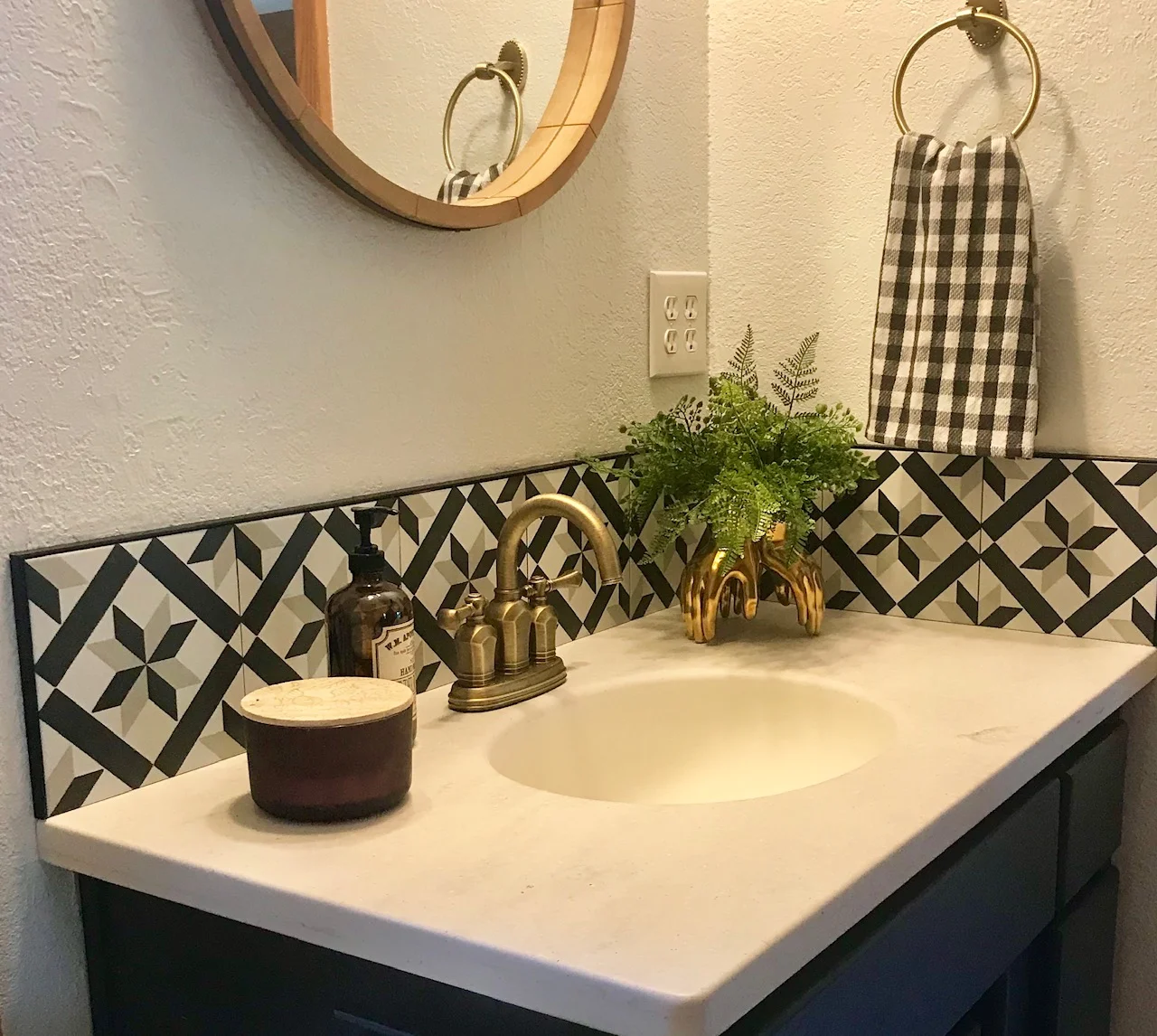 All of the finishes were in serious need of updating, but it had to be done on a serious budget. Since moving into our house in September of 2018, we had already gone through some major renovations and this bathroom wasn’t on the immediate list of rooms to overhaul. But since it is the bathroom that our guests use, I wanted to give it a little face lift and felt we could do some small things that would make a really big difference. And the One Room Challenge was a great excuse to get it done!